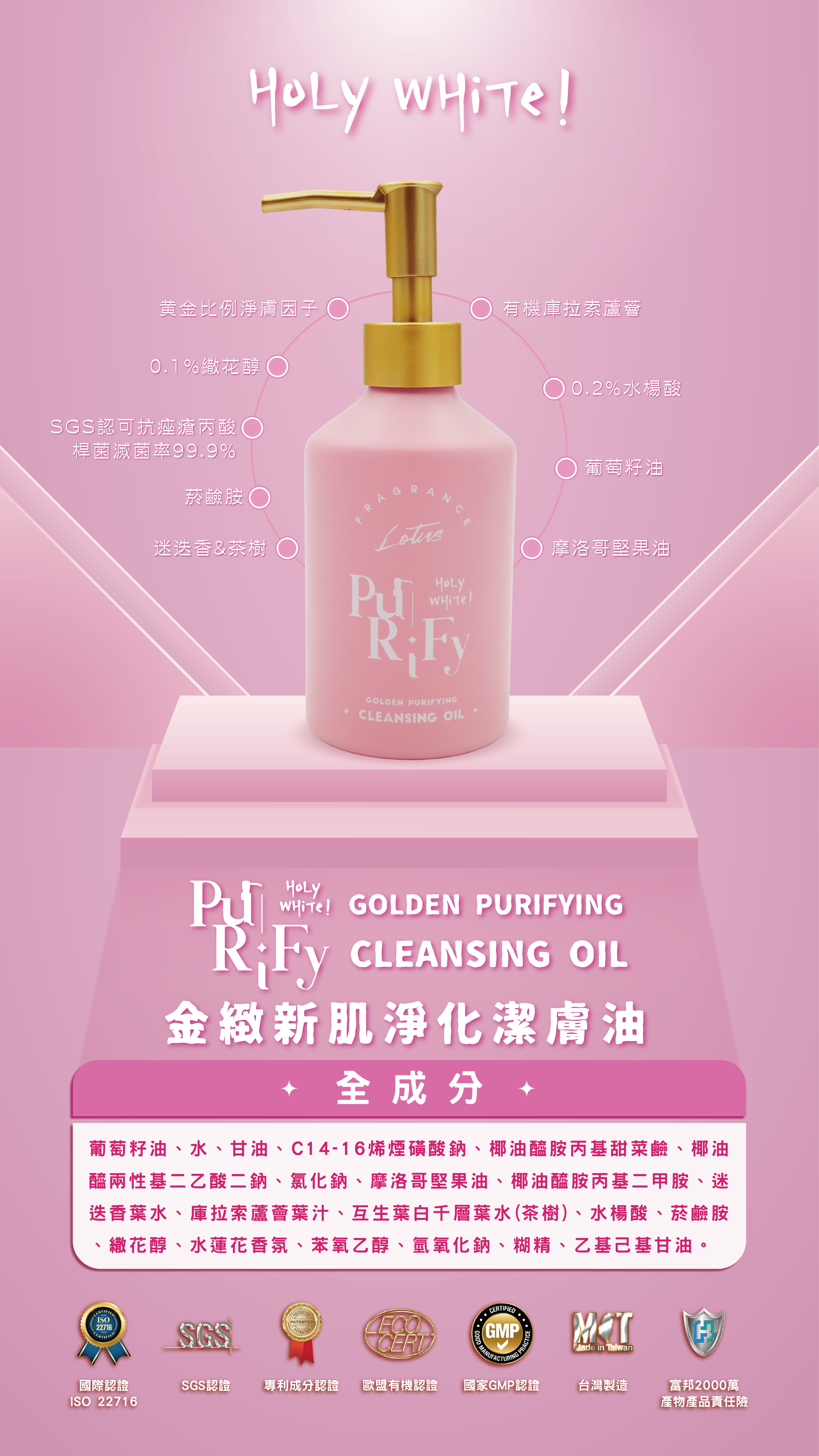 品名:HoLy WHiTe金緻新肌淨化潔膚油