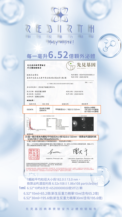 •每 1 ml 含 6.52 億顆外泌體(精準 180nm)高效直達肌底